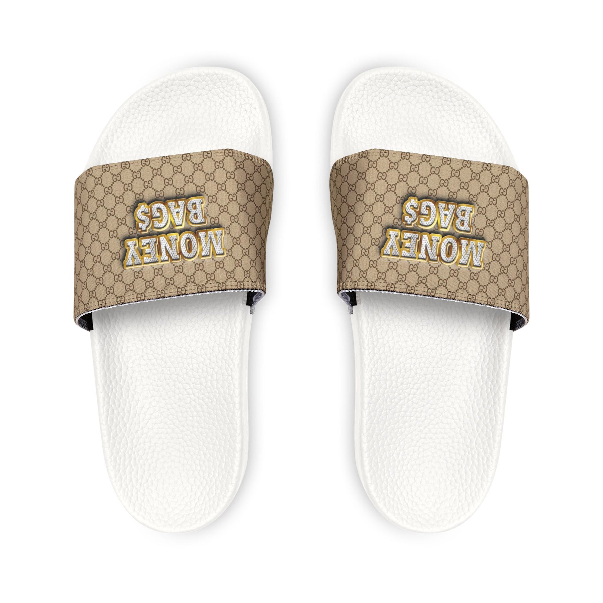 - Available black or white outsole; printed or plain strap options