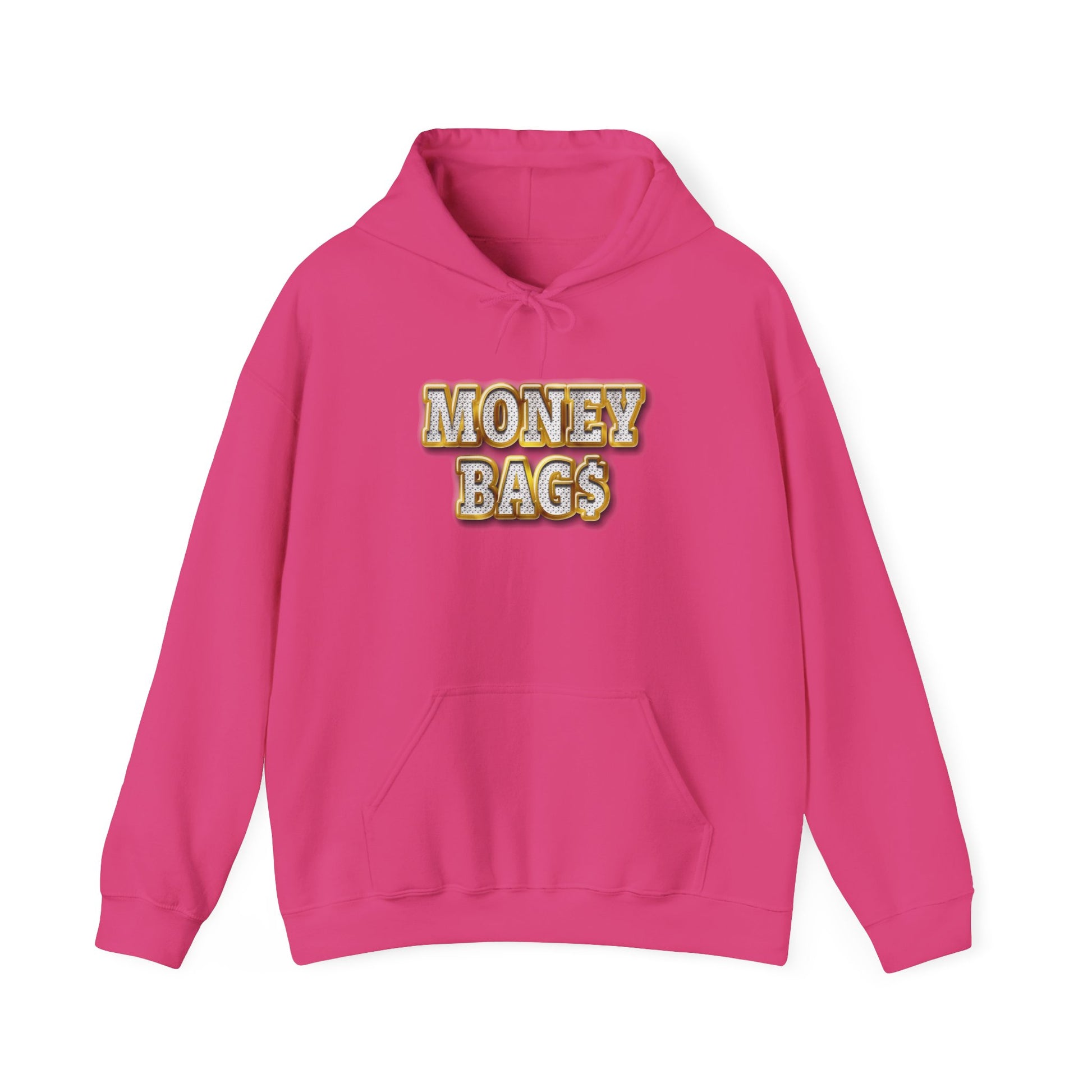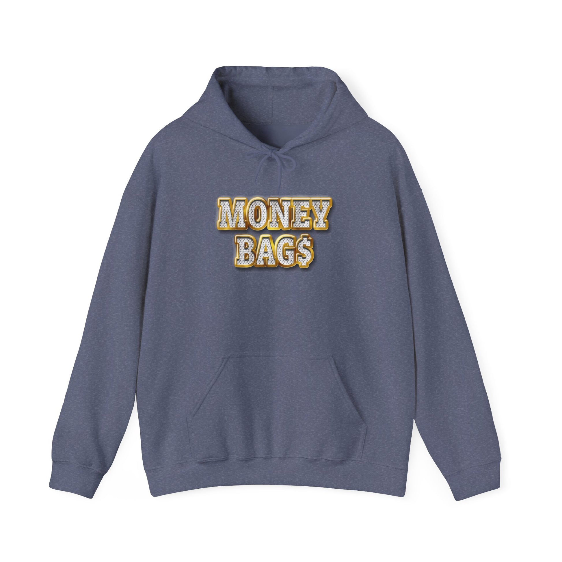 Money Bags Hoodie | Gold Text Graphic Sweatshirt